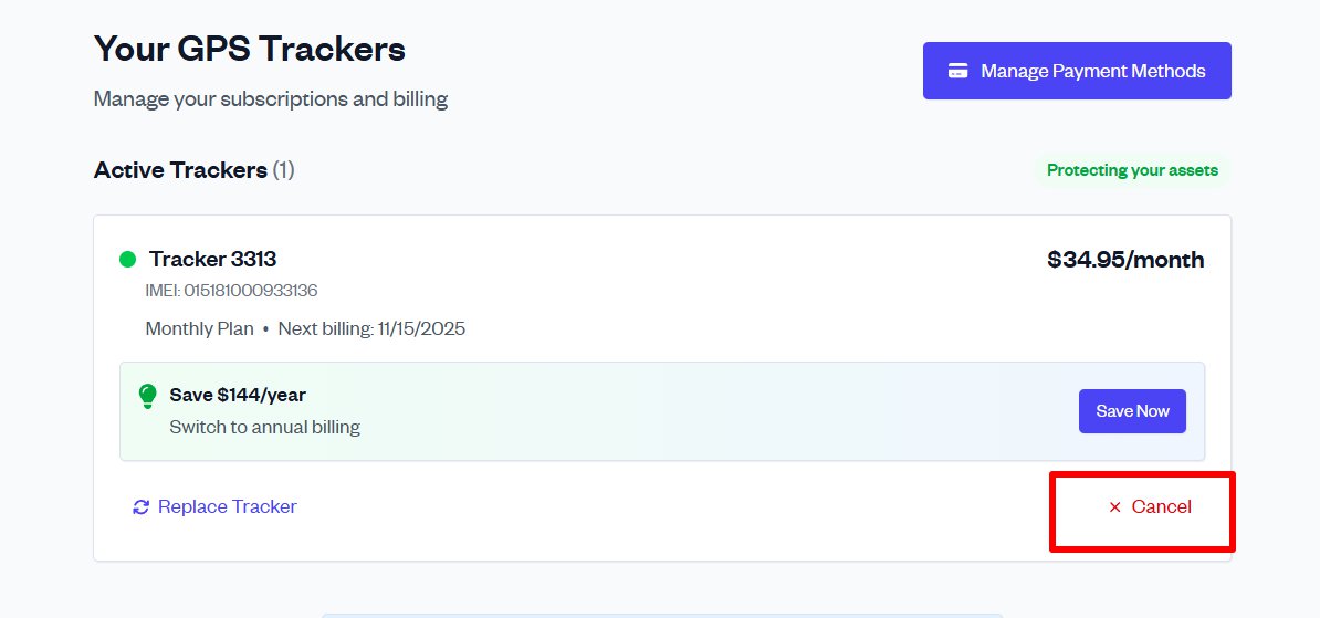 - Once your subscription is canceled, your tracker will be deactivated and removed from your account