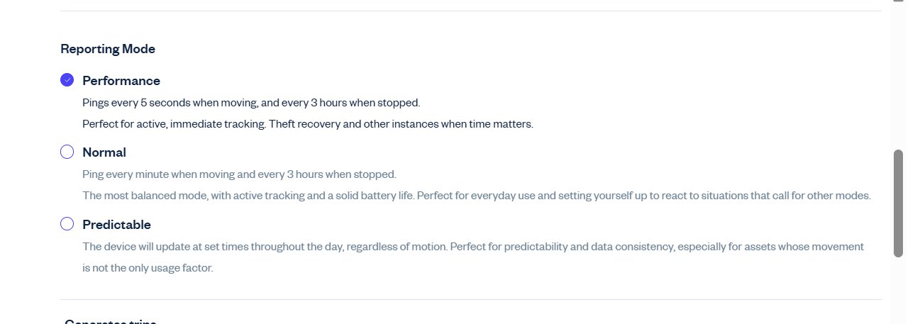 One of the most important settings to configure is the reporting mode, which determines how frequently your tracker updates its location.
