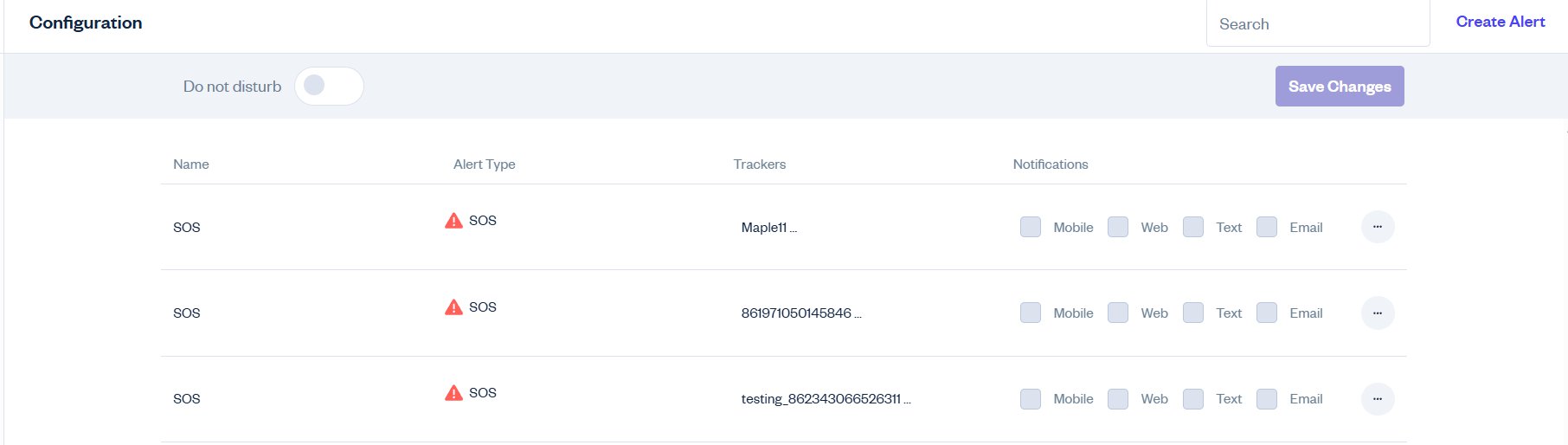 - Selecting which trackers should trigger the alert